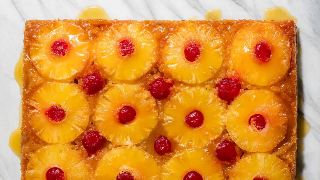 The words sweet, like the brown sugar or maraschino cherries that topped the upside down dessert.